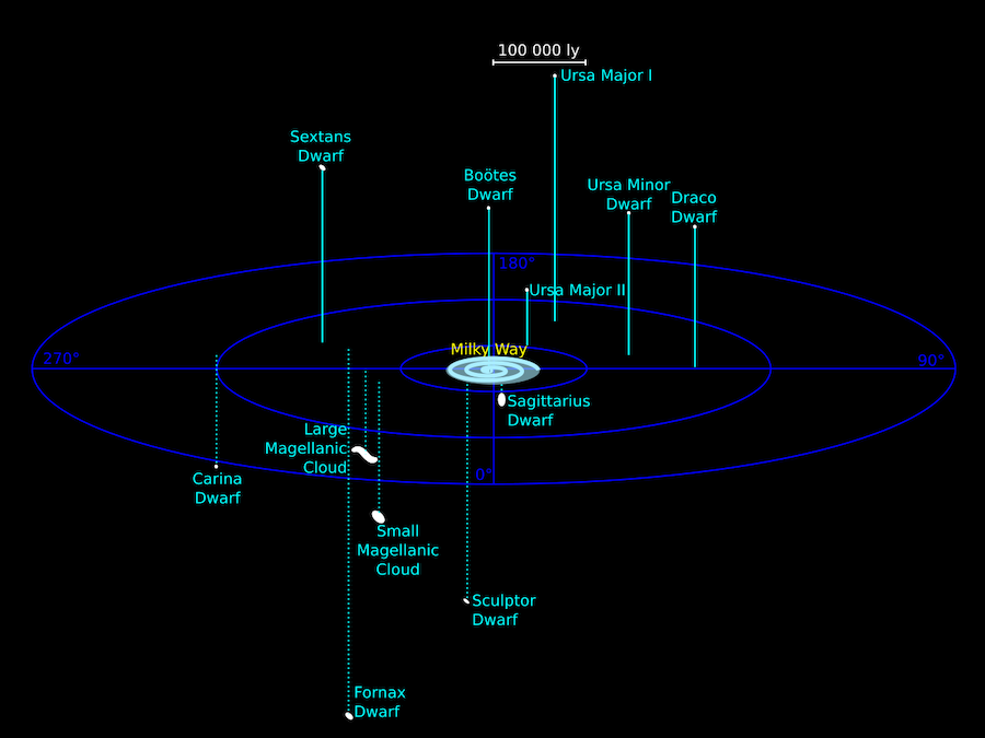Location of the gravitationally bound companion galaxies to the Milky Way.