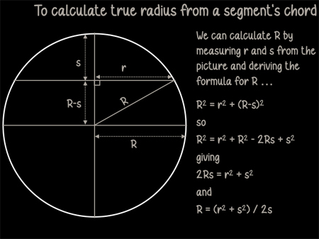 ** You can estimate the apparent diameter of the moon in the picture if you draw a chord of the curve that we see and measure its length (2r in the diagram) and its "sag" (s in the diagram).