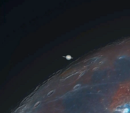 Saturn setting behind the Moon
