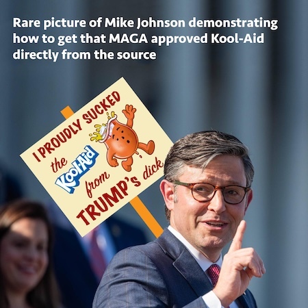 How can Mike Johnson abandon all dignity and existing beliefs just for the endorsement of an orange idiot? I think we might have discovered the answer.