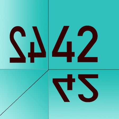 The reflection on the floor has the 4 on the left and 2 on the right, as in the original image, but the numbers are upside down. The reflection on the side wall has the numbers the right way up but the 2 is on the left and the 4 is on the right, the opposite of the original image.